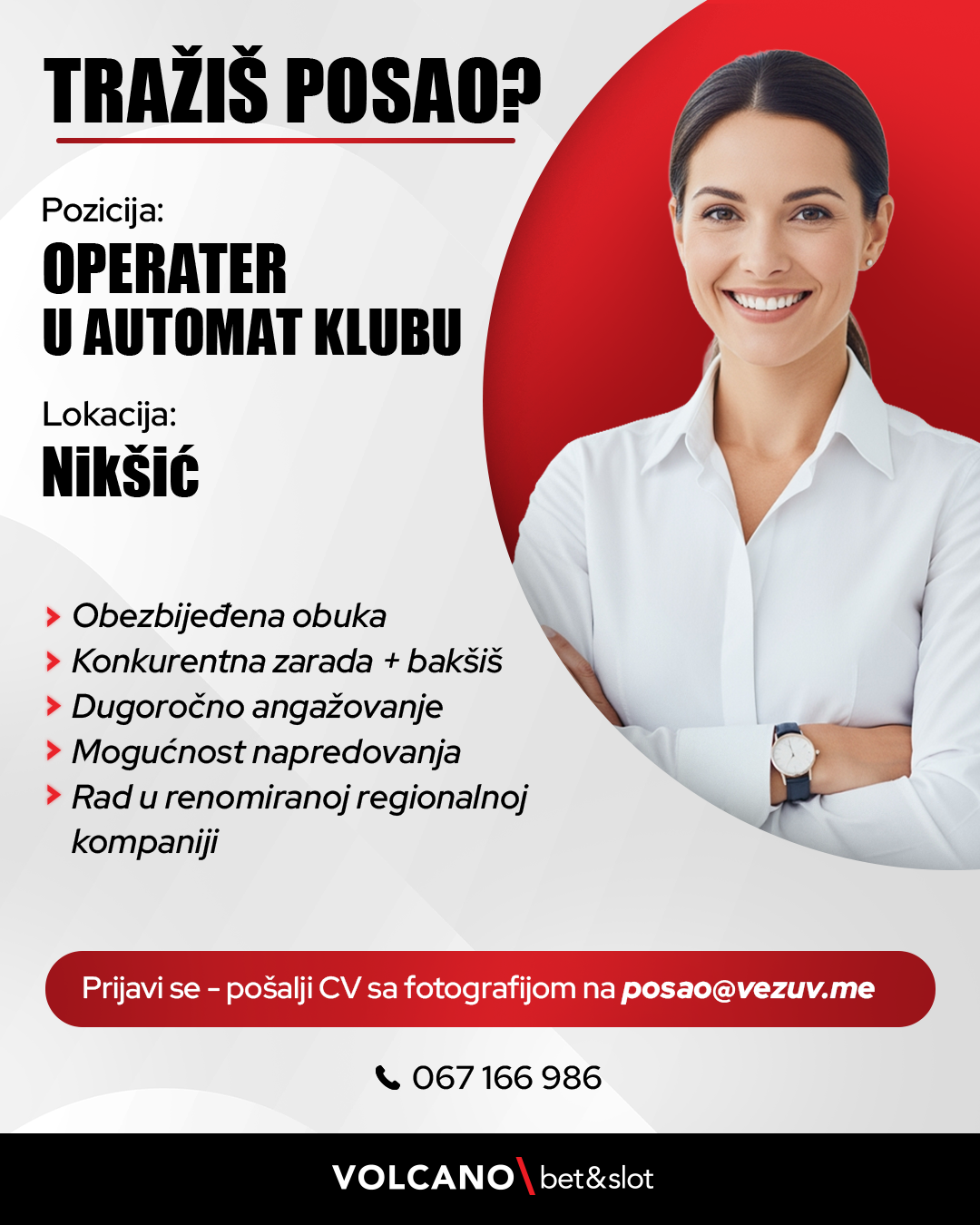 Prijavi se - pošalji CV sa fotografijom na posao@vezuv.me
