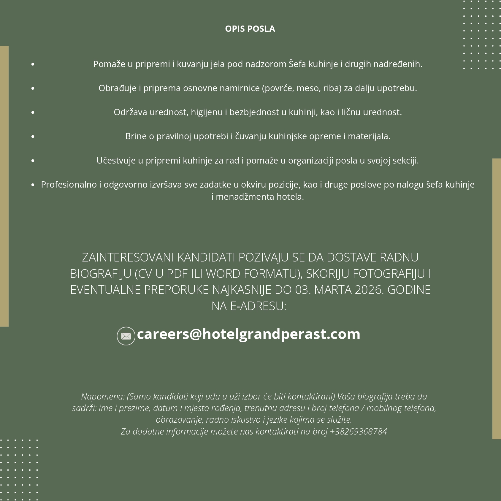 (Samo kandidati koji uđu u uži izbor će biti kontaktirani)