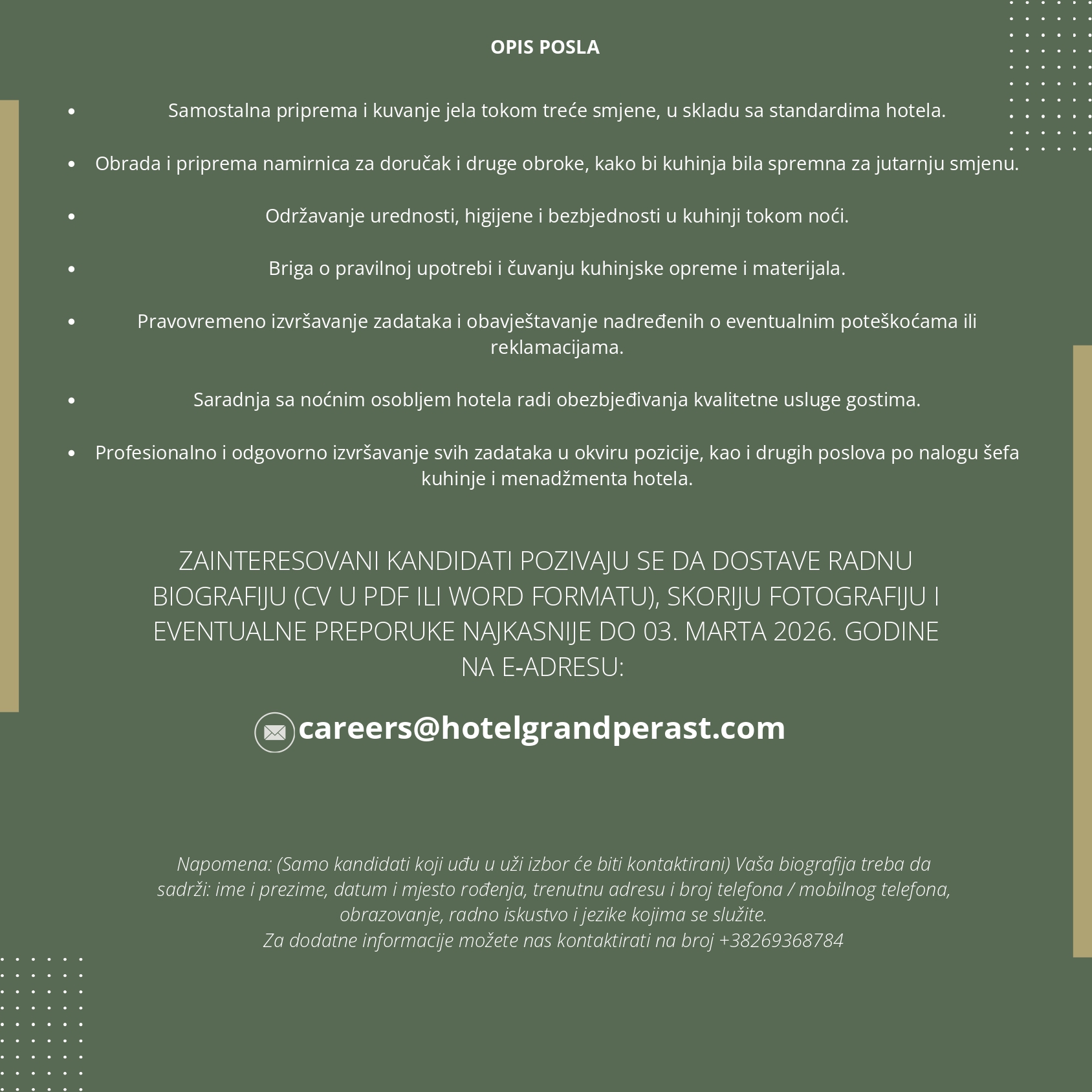 (Samo kandidati koji uđu u uži izbor će biti kontaktirani)