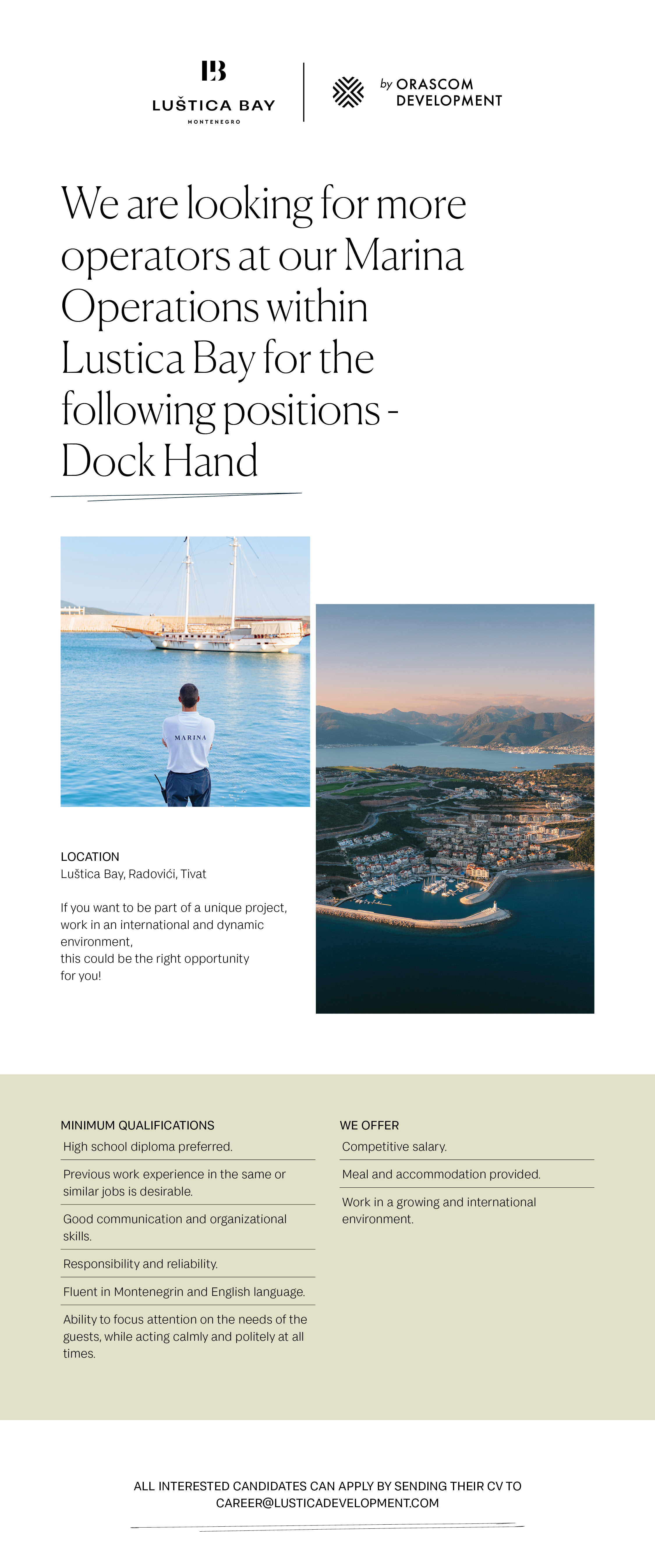 All interested candidates can apply by sending their CV to: career@lusticadevelopment.com