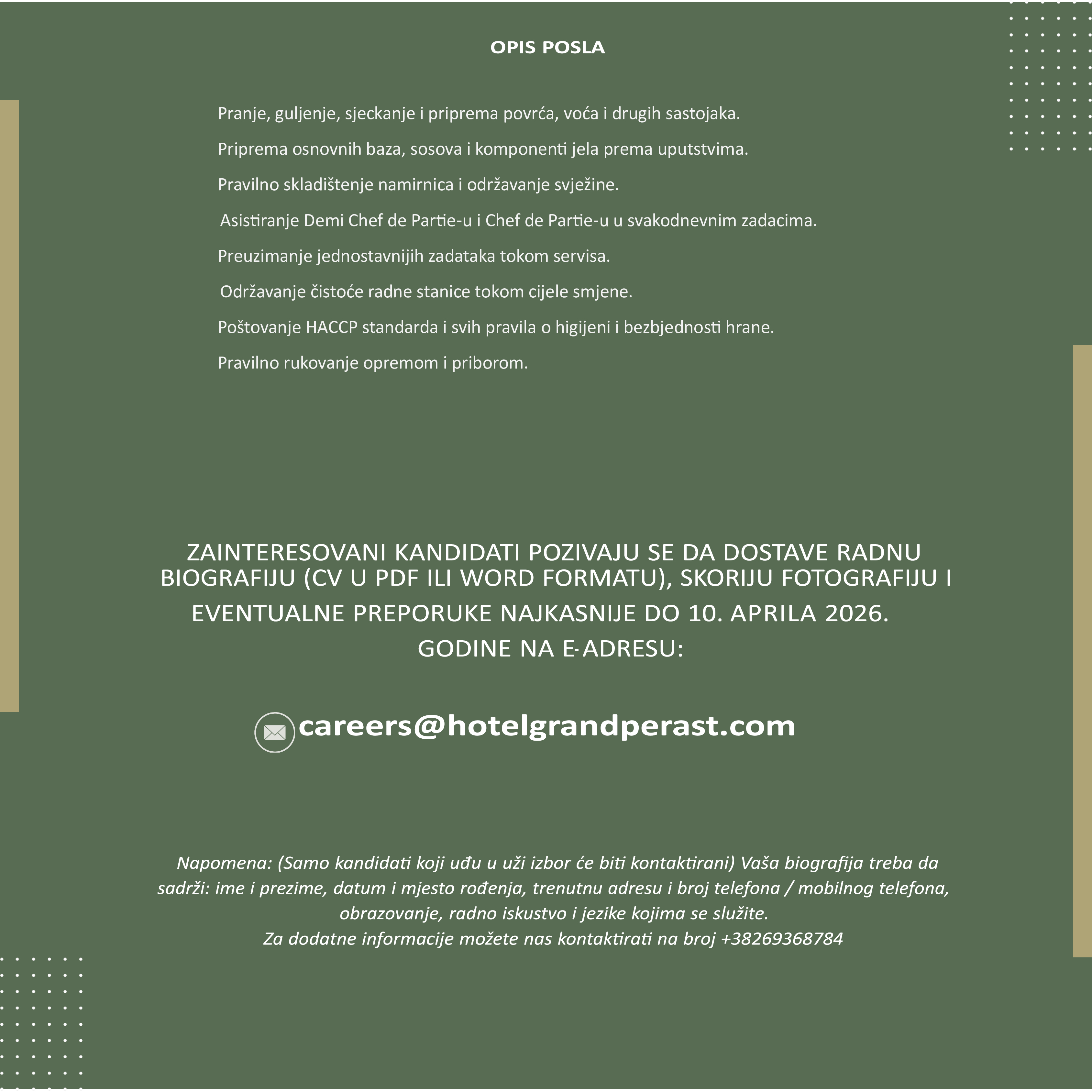 (Samo kandidati koji uđu u uži izbor će biti kontaktirani)