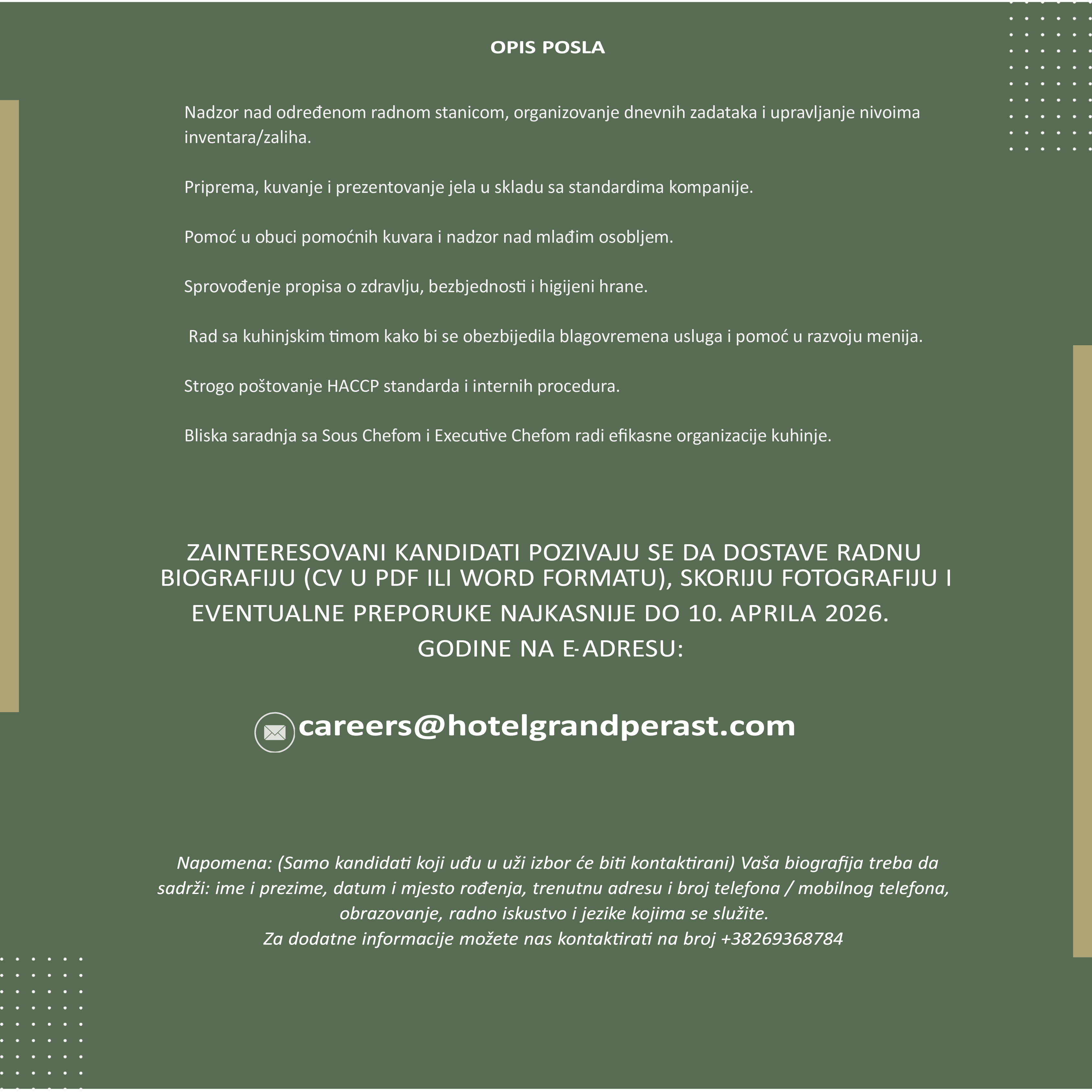 (Samo kandidati koji uđu u uži izbor će biti kontaktirani)