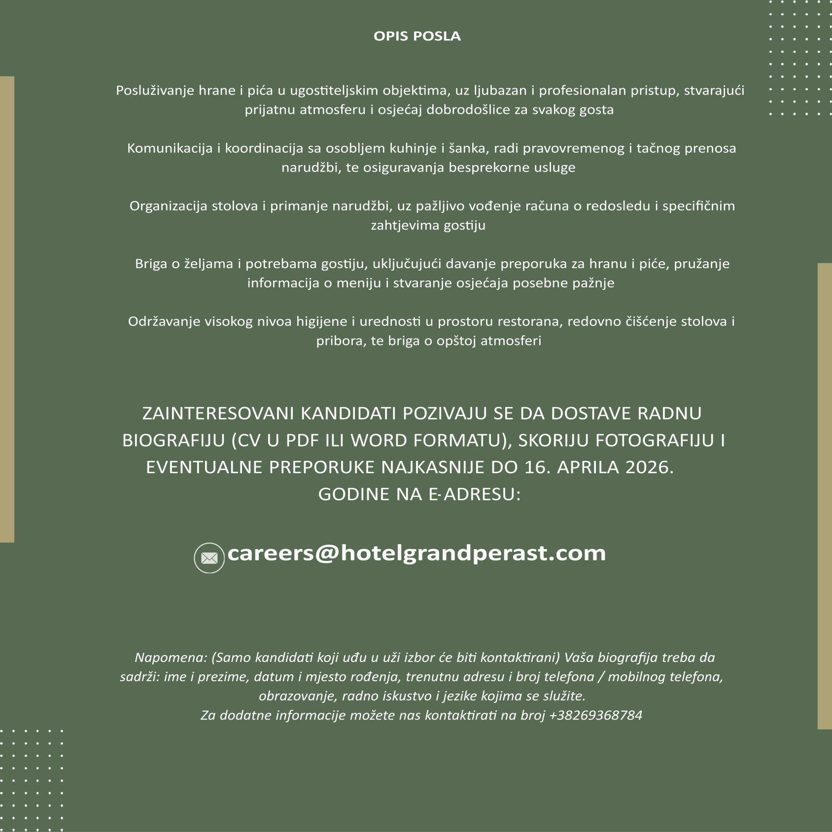 (Samo kandidati koji uđu u uži izbor će biti kontaktirani)