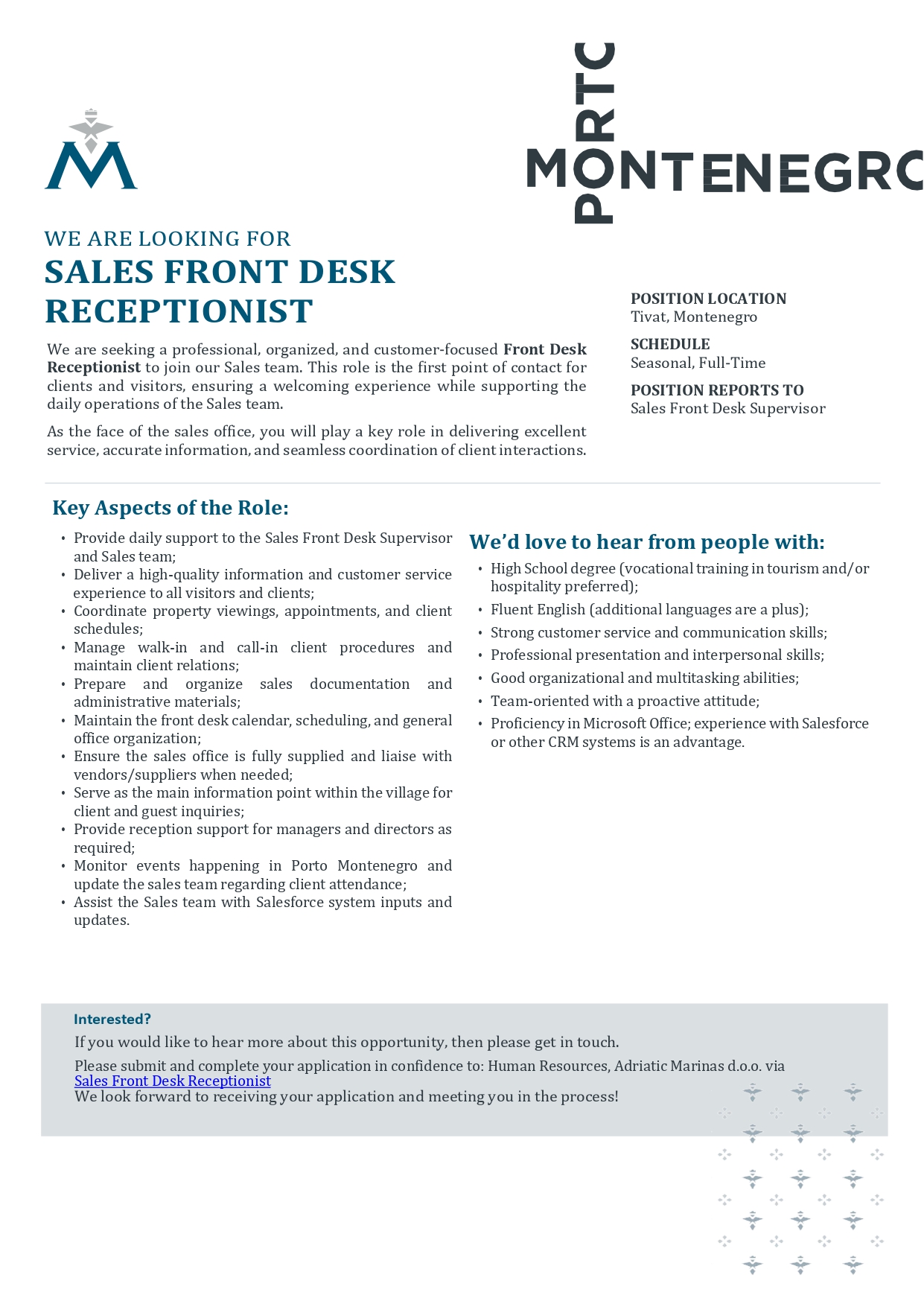 Sales Front Desk Receptionist (m/f)