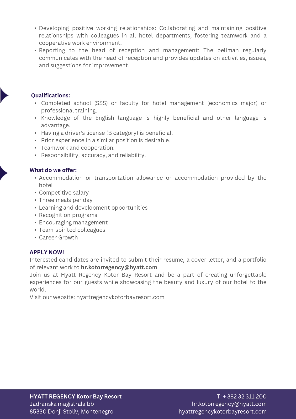 Front Office Bell Captain (m/f)