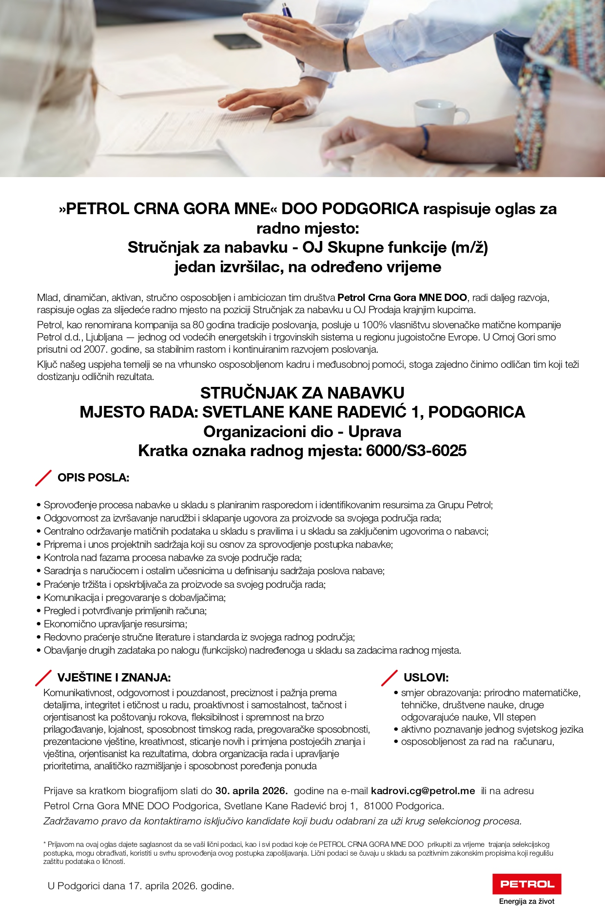 godine ili putem opcije KONKURIŠITE NA OGLAS.