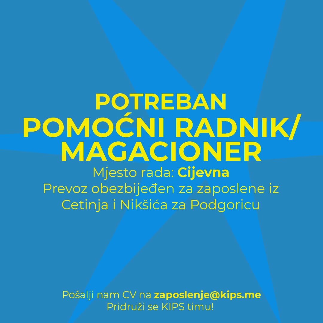 Prijave za zaposlenje, koje uključuju CV poslati na mail zaposlenje@kips.me sa oznakom “za oglas”.