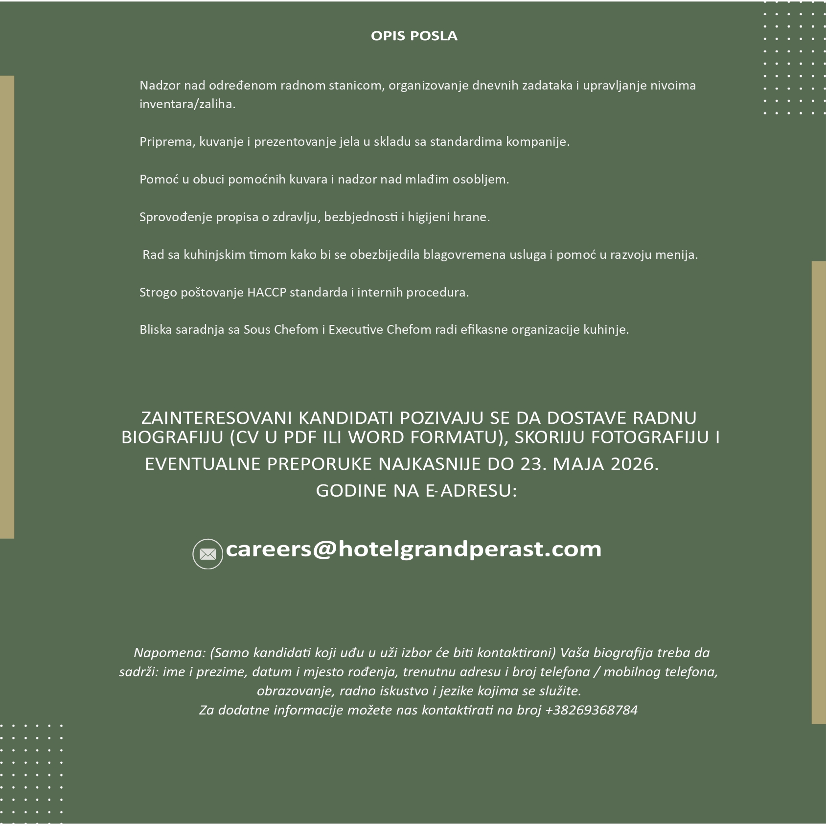 (Samo kandidati koji uđu u uži izbor će biti kontaktirani)