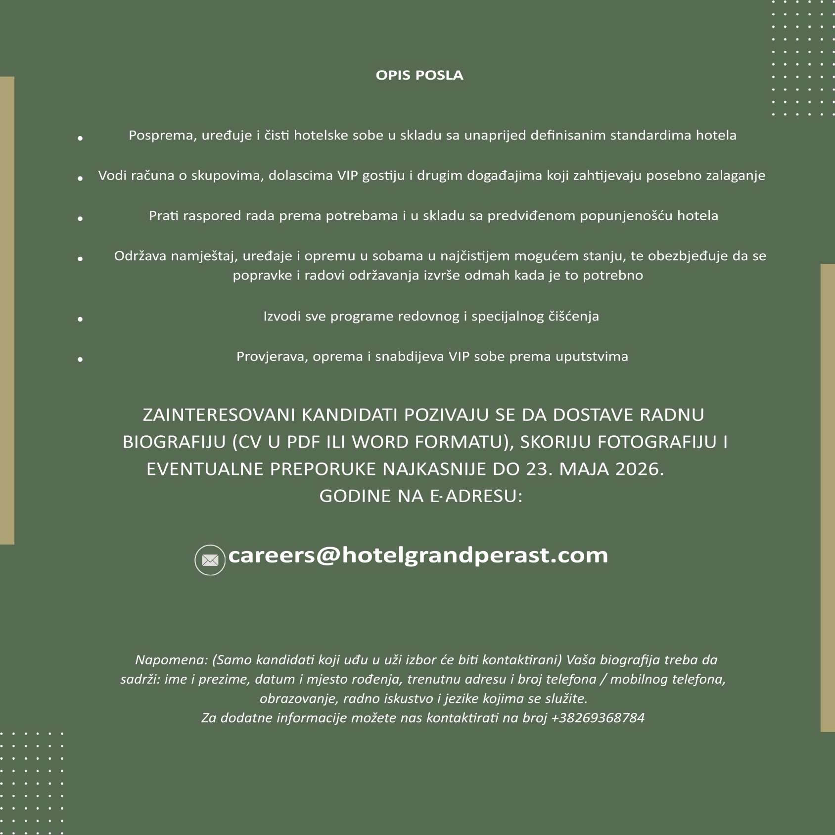 (Samo kandidati koji uđu u uži izbor će biti kontaktirani)
