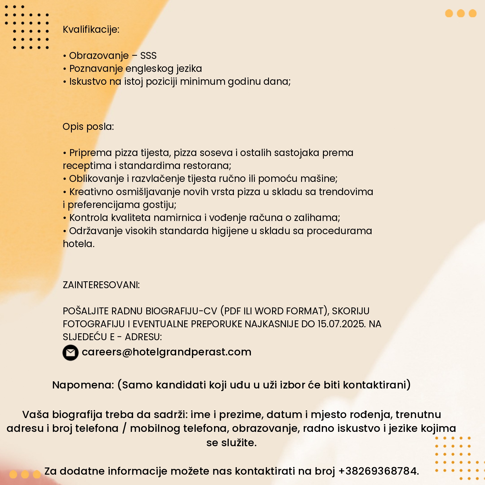 (Samo kandidati koji uđu u uži izbor će biti kontaktirani)