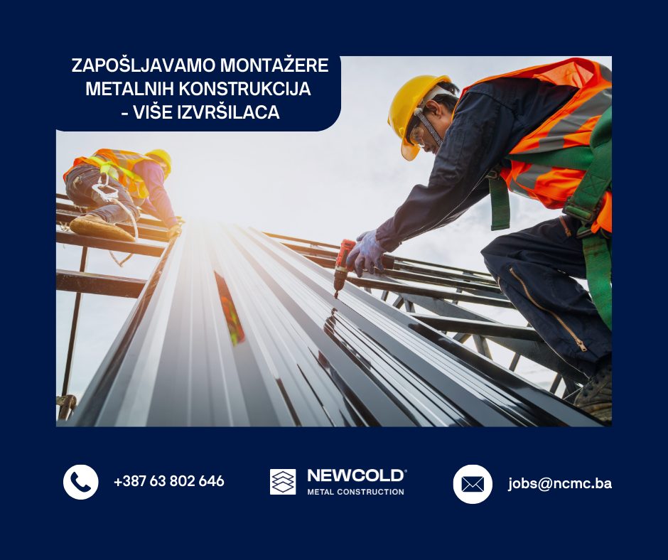 Zainteresovani kandidati mogu se prijaviti slanjem CV-ija na e-mail: jobs@ncmc.ba sa naznakom "Prijava na konkurs – montažer metalnih konstrukcija" ili putem opcije KONKURIŠITE ili lično u sjedištu firme na adresi: Newcold Metal Construction 3. GMB Jastrebovi broj 29, Usora.