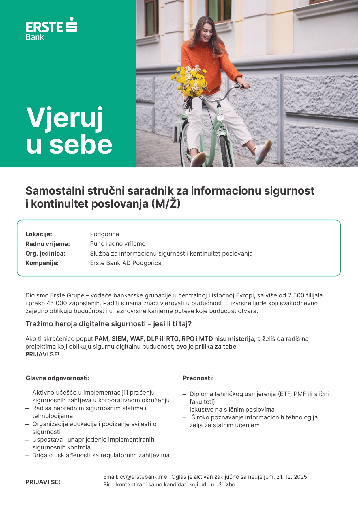 Oglas je aktivan zaključno sa nedjeljom 21.12.2025. godine