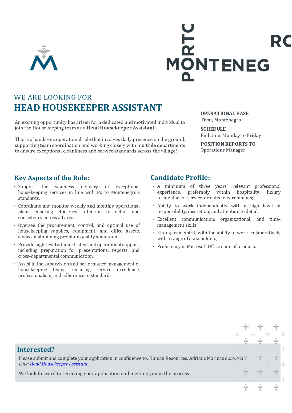 Head housekeeper assistant (m/f)