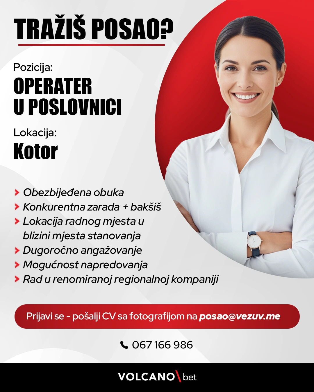 Prijavi se - pošalji CV sa fotografijom na posao@vezuv.me