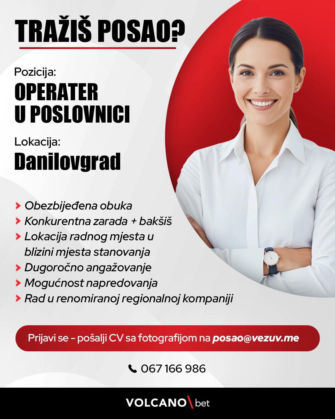 Prijavi se - pošalji CV sa fotografijom na posao@vezuv.me