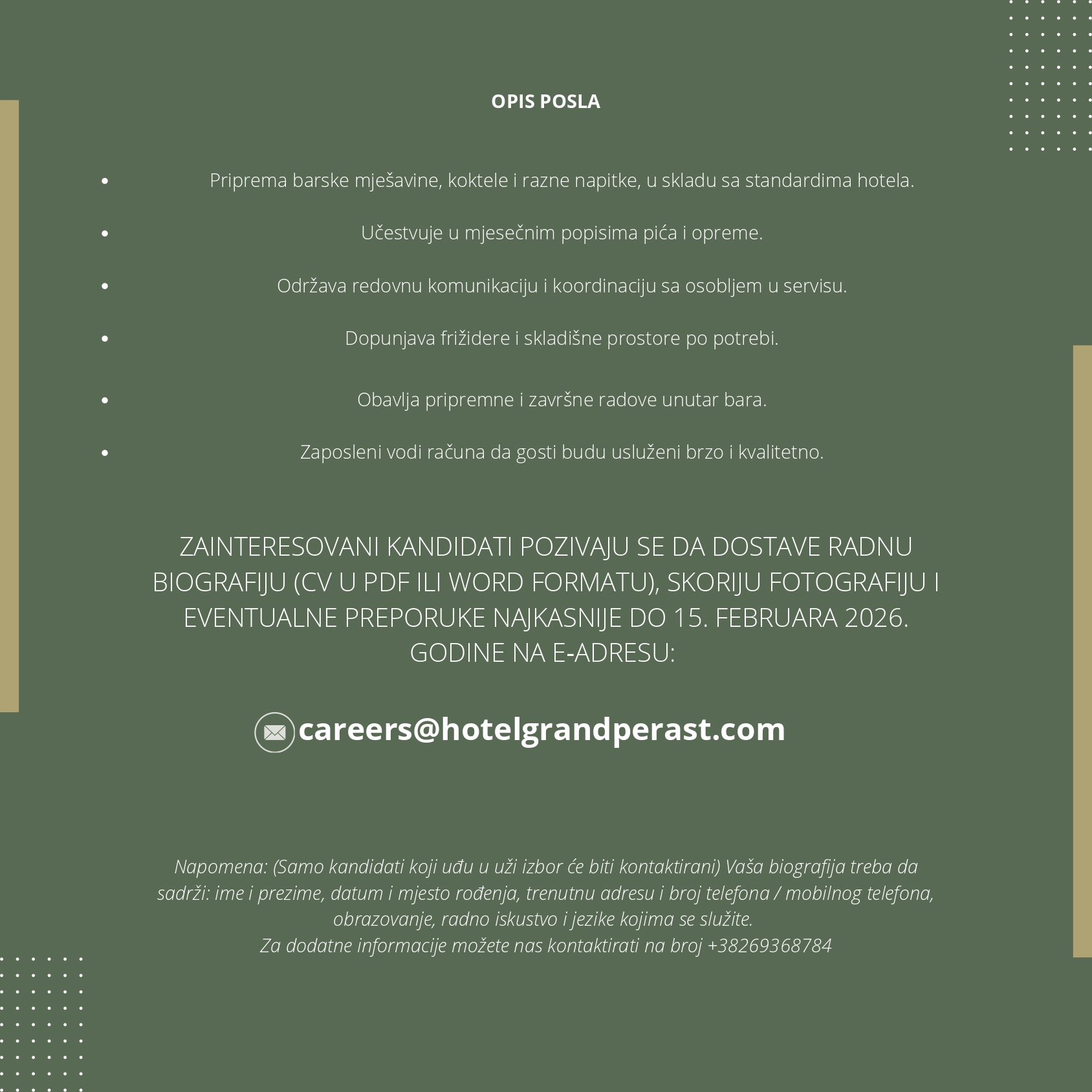 (Samo kandidati koji uđu u uži izbor će biti kontaktirani)