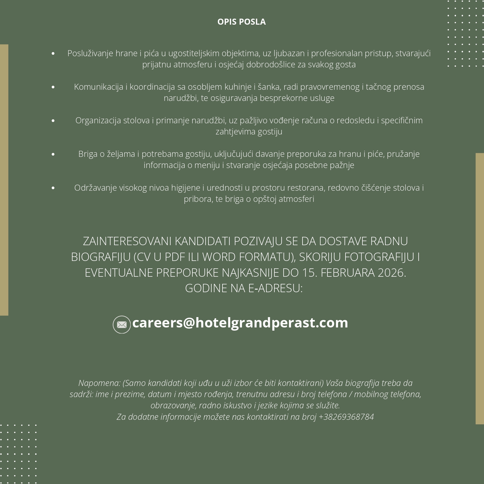 (Samo kandidati koji uđu u uži izbor će biti kontaktirani)