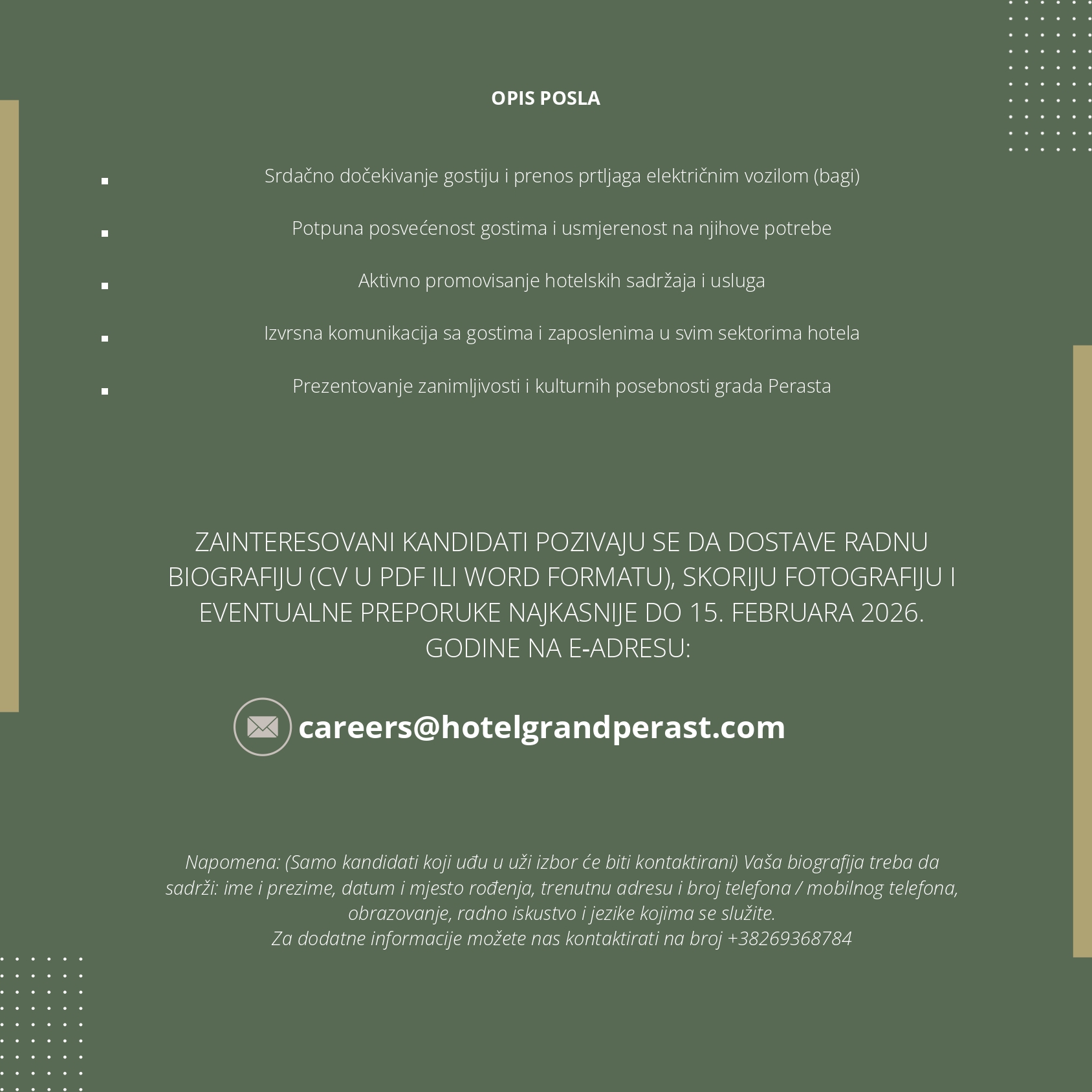(Samo kandidati koji uđu u uži izbor će biti kontaktirani)
