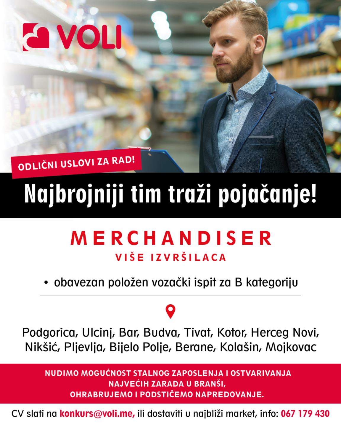 Prijave koje uključuju CV i fotografiju dostaviti na mail adresu: konkurs@voli.me