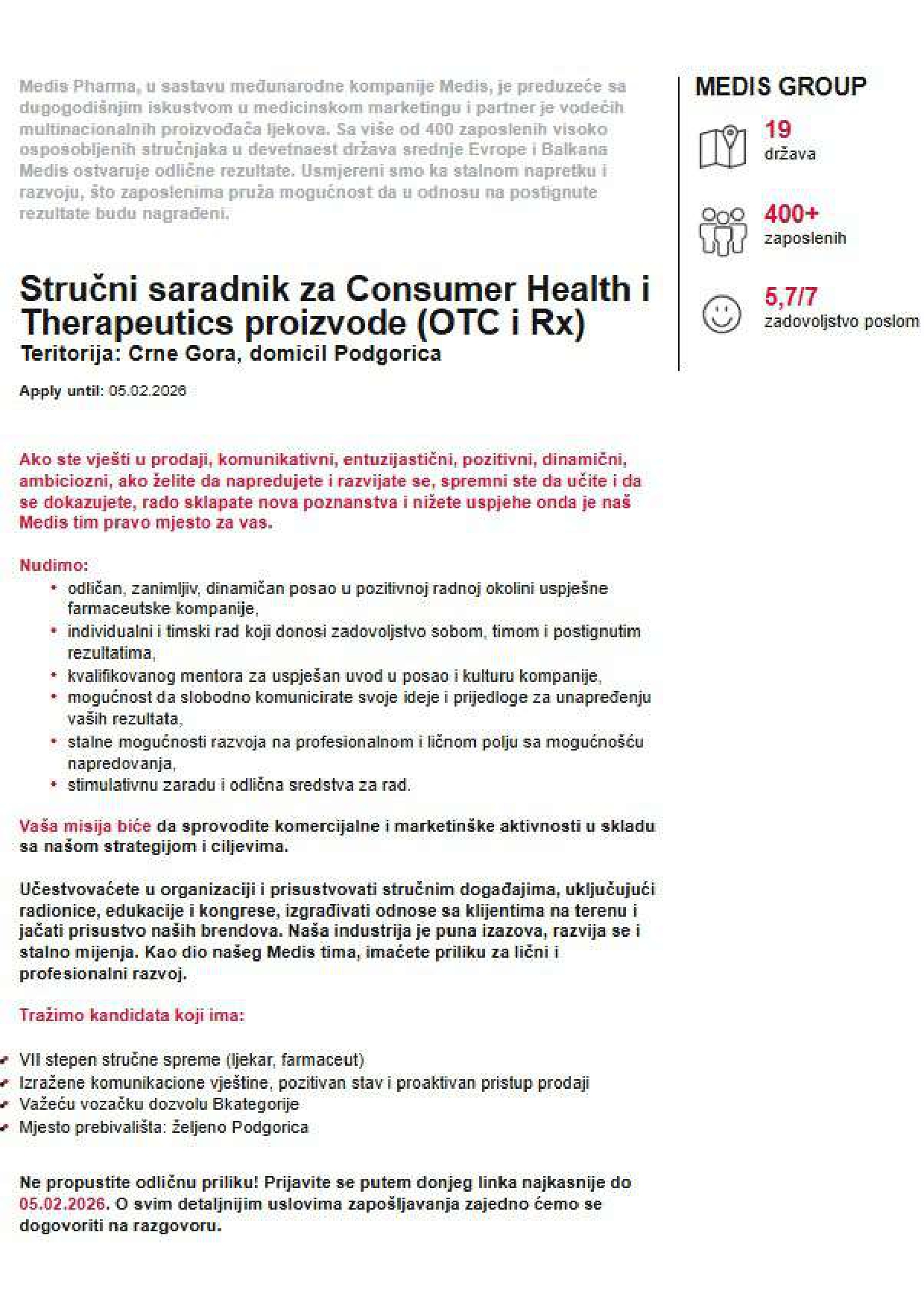 Stručni saradnik za Consumer Health i Therapeutics proizvode…