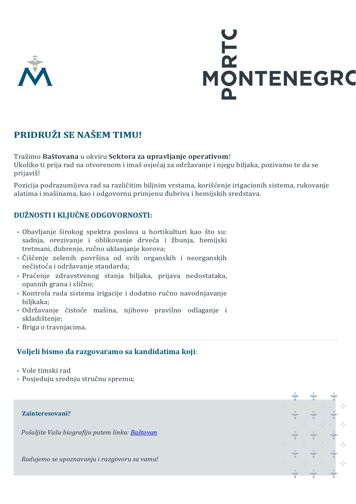 Join our team at Marina Porto Montenegro (m/f)