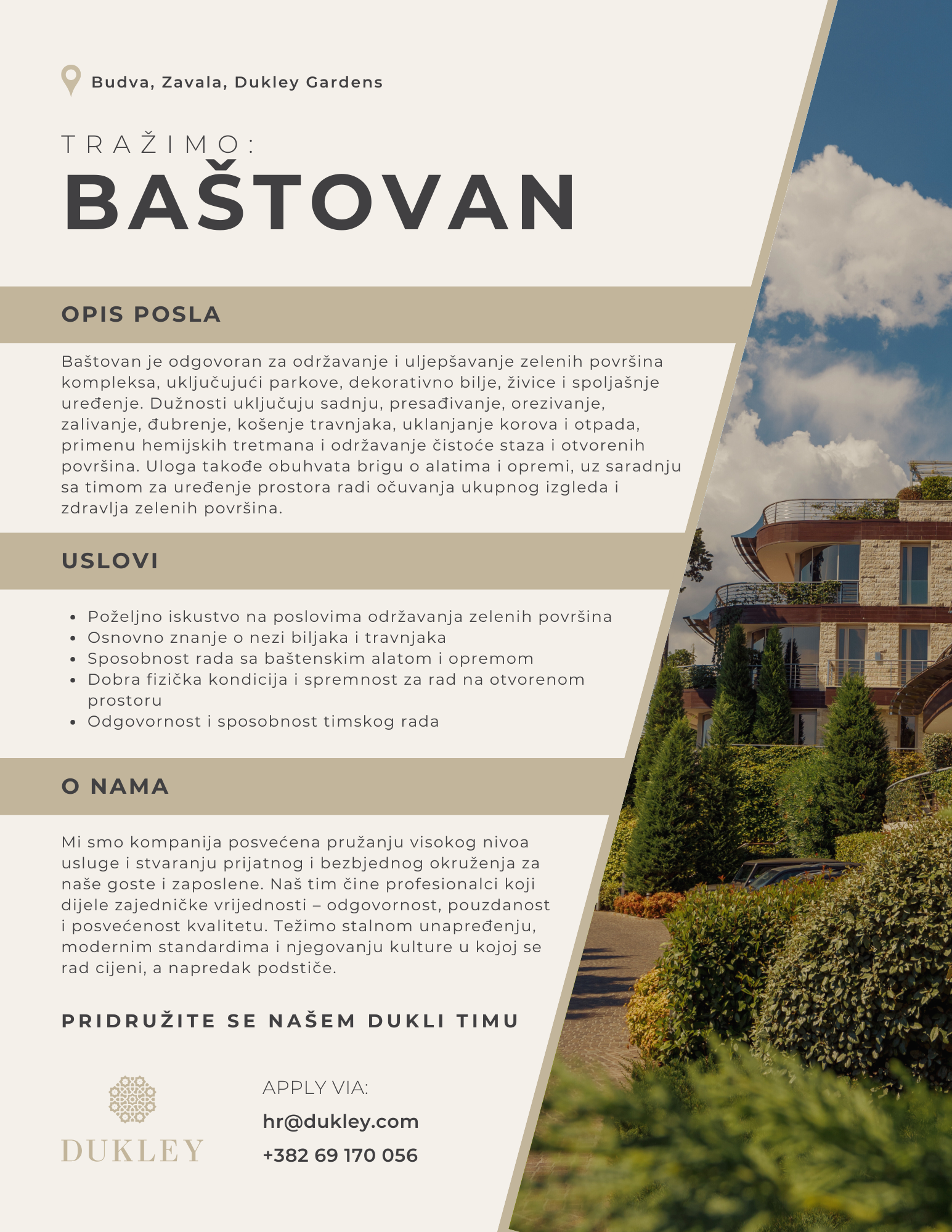 PRIDRUŽITE SE NAŠEM DUKLI TIMU! APPLY VIA: hr@dukley.com +382 69 170 056