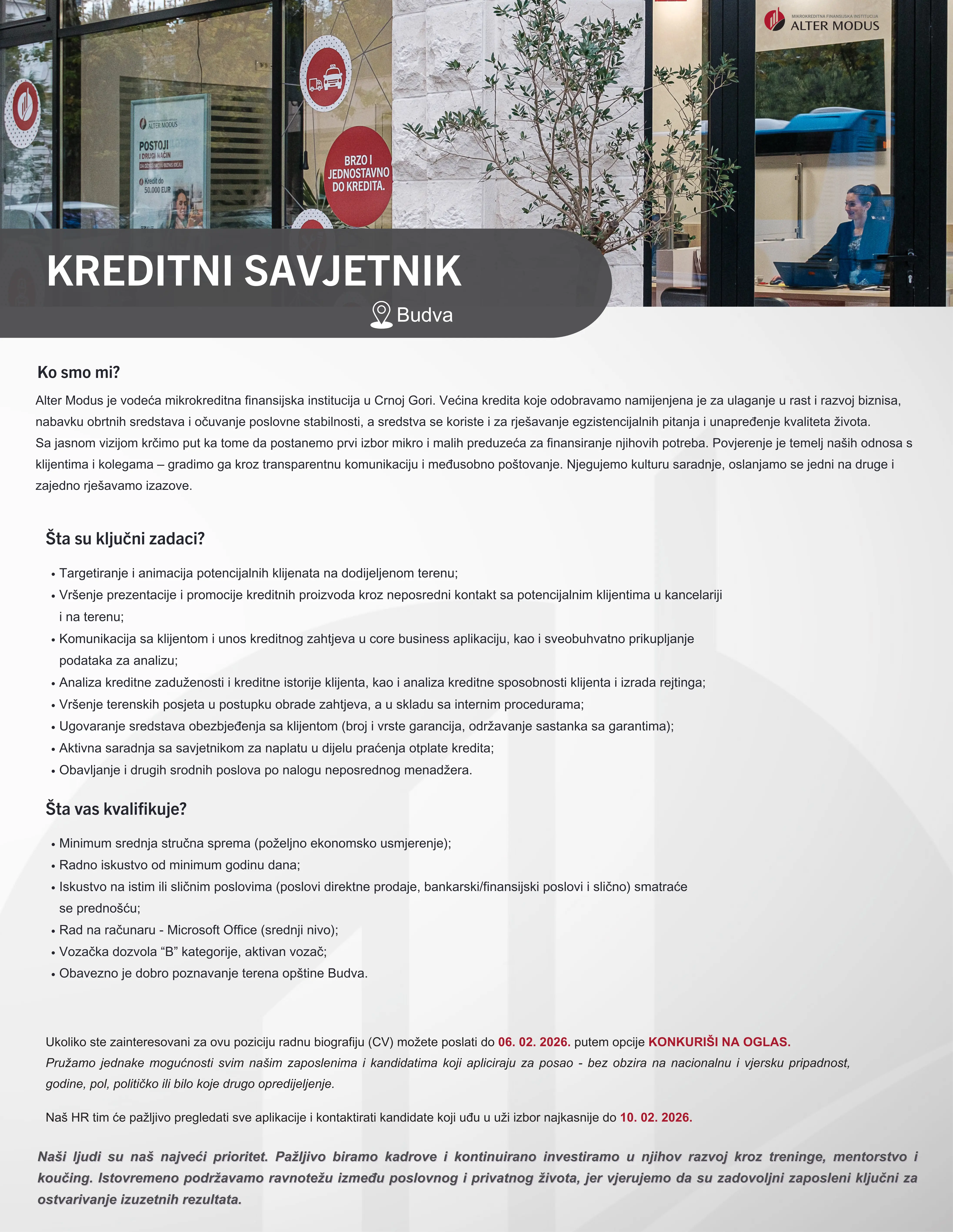 Zainteresovani kandidati se mogu prijaviti putem opcije KONKURIŠI.