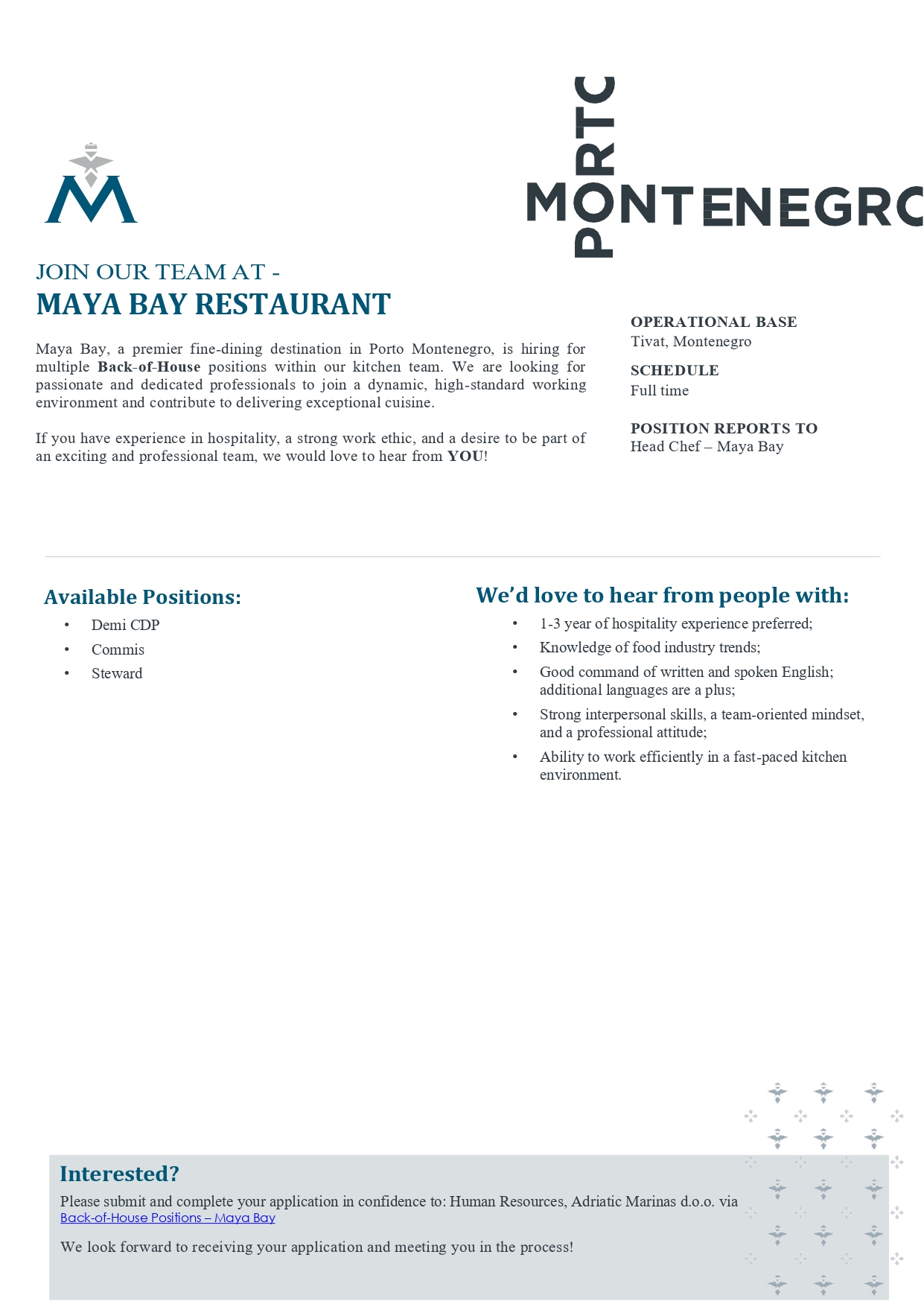 Join our team at Marina Porto Montenegro (m/f)