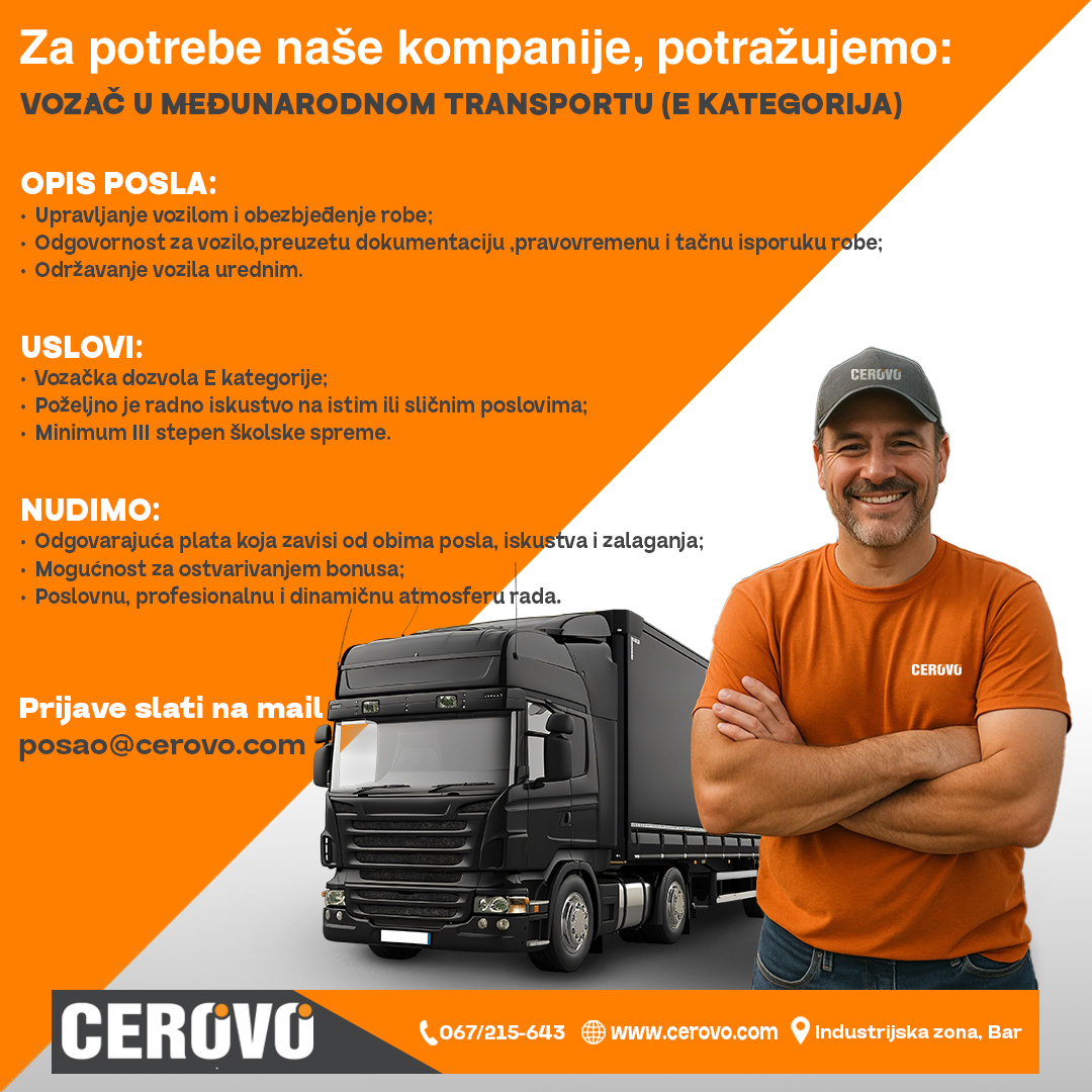 Vozač u međunarodnom transportu (E kategorija) (m/ž)