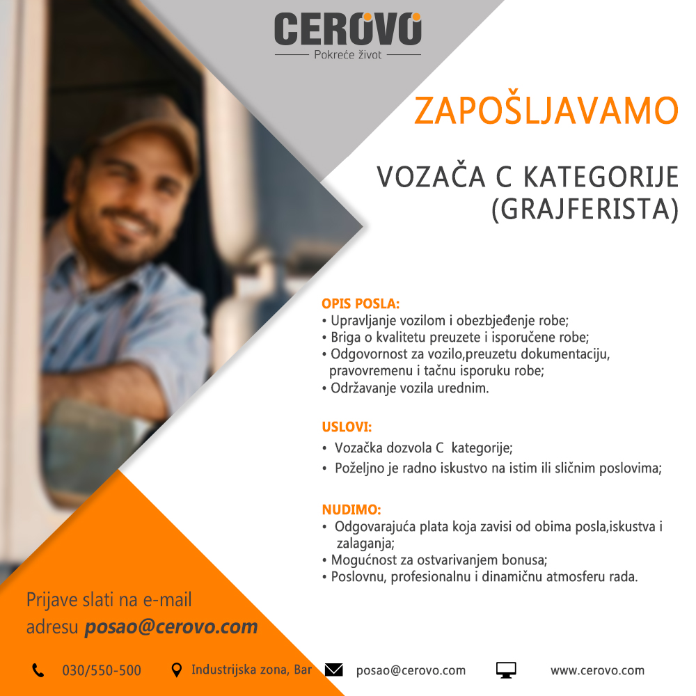 Prijave slati na e-mail: posao@cerovo.com